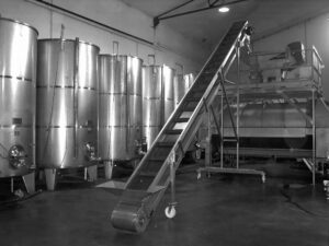 In 1976, a group of winemakers were looking for a solution for transporting grapes inside the winery that would not break them like the devices of the time. Industrias Sanz manufactured a stainless steel belt and pvc band that did not damage the grapes and also collected the must produced in the field during the journey. The machine was a great success, and soon spread to many factories. With this, the company entered the winery machinery sector, where it is still active today.